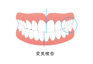 上下の歯の真ん中がずれている、あるいは一部が「反対に噛んでいる」状態です。