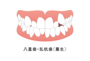 顎が小さいことや乳歯の早期喪失など、歯が並ぶスペース不足がおもな原因です。