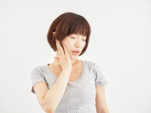 口が開きにくくなったり、顎がカクッと音を立てたりするなど、顎関節症の症状があらわれるリスクもあります。
